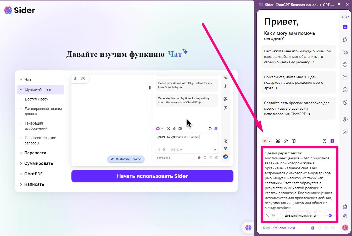 Для установки расширения Sider в браузере Chrome потребуется выполнить несколько шагов.
