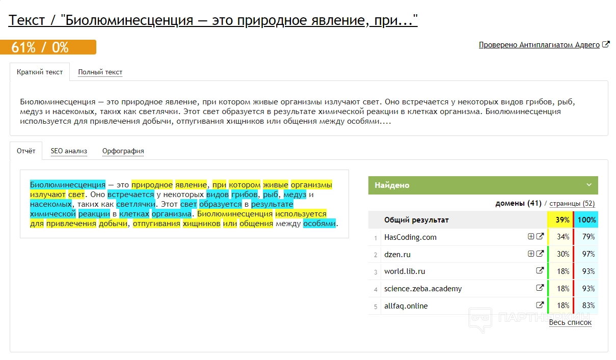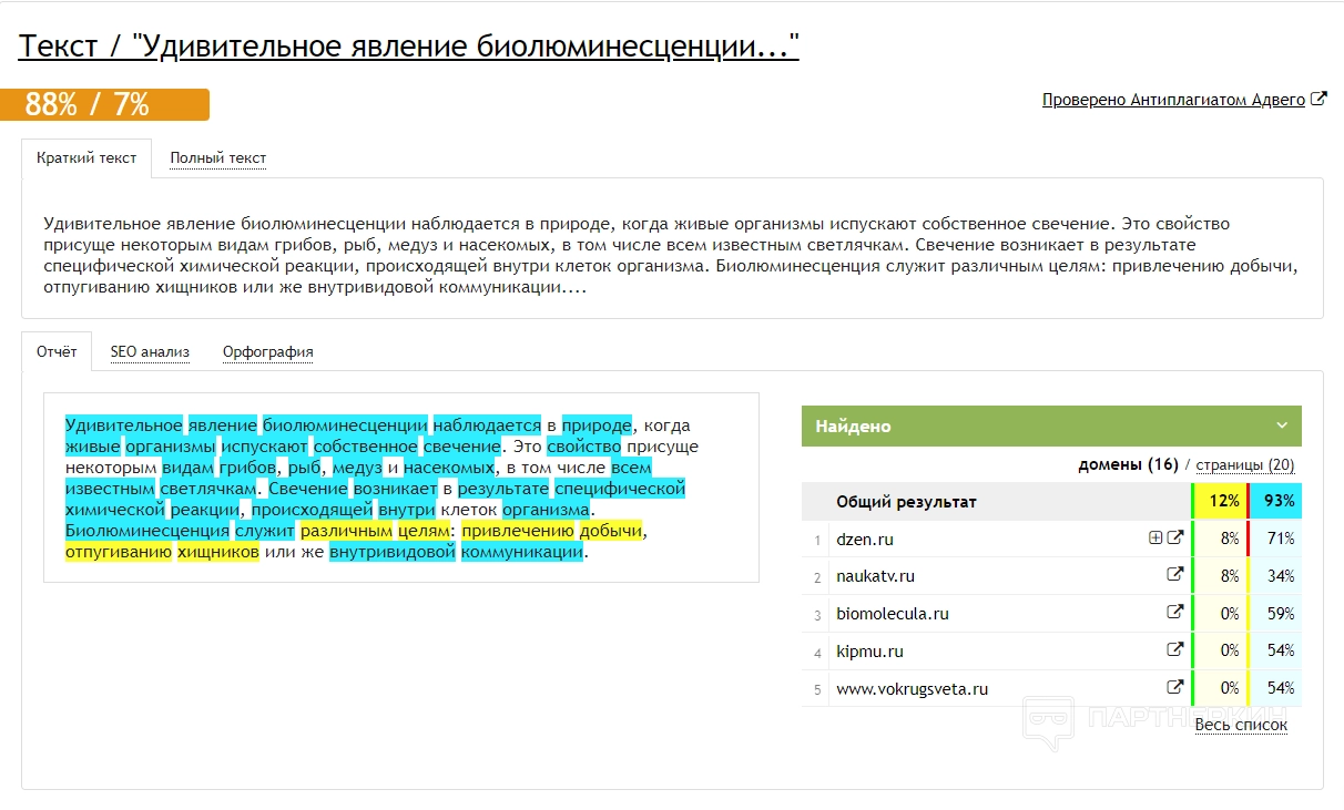 Данная модель на первый взгляд отлично справилась со своей задачей. Текст звучит хорошо, при этом он полностью сохранил суть исходного материала. Проверим уникальность этих текстов: