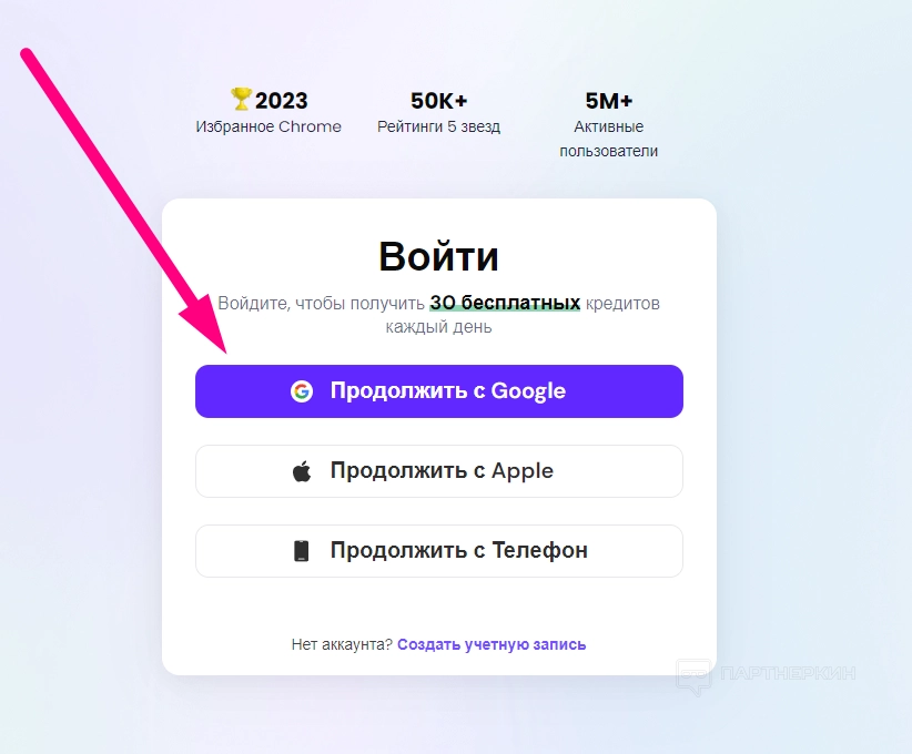 Важно! После входа пользователи получают доступ к 30 бесплатным кредитам ежедневно для работы с инструментами платформы.