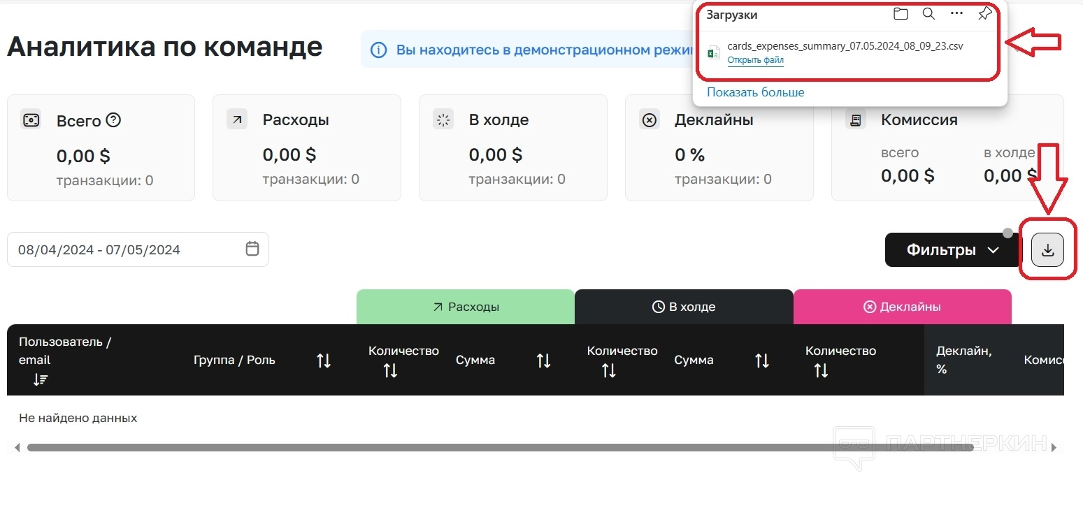 - Аналитика . В этом разделе можно изучать аналитику по команде и по всем заказанным картам. Раздел снабжён удобными расширенными таблицами, управлять данными в которыми можно с помощью фильтров.