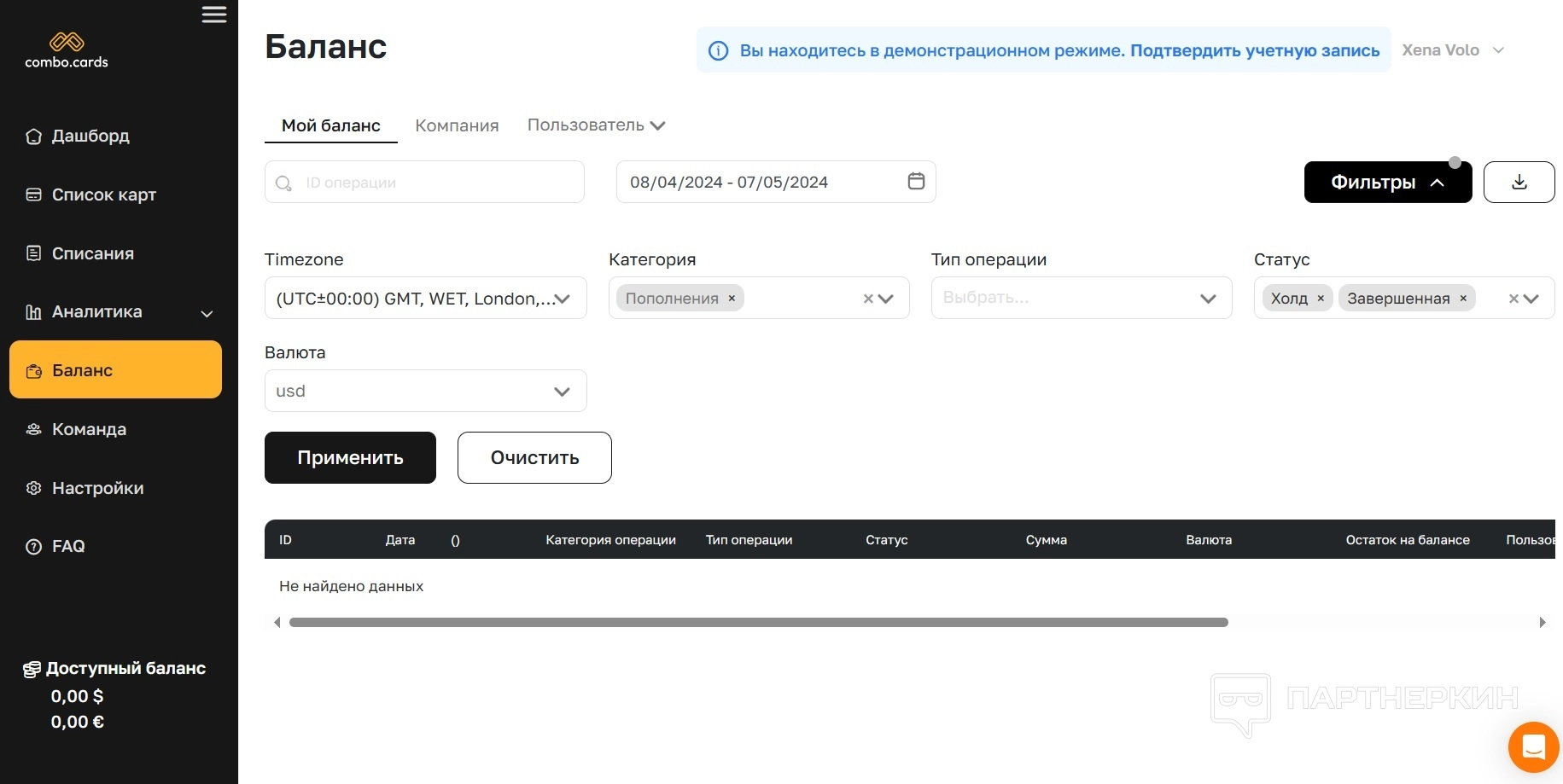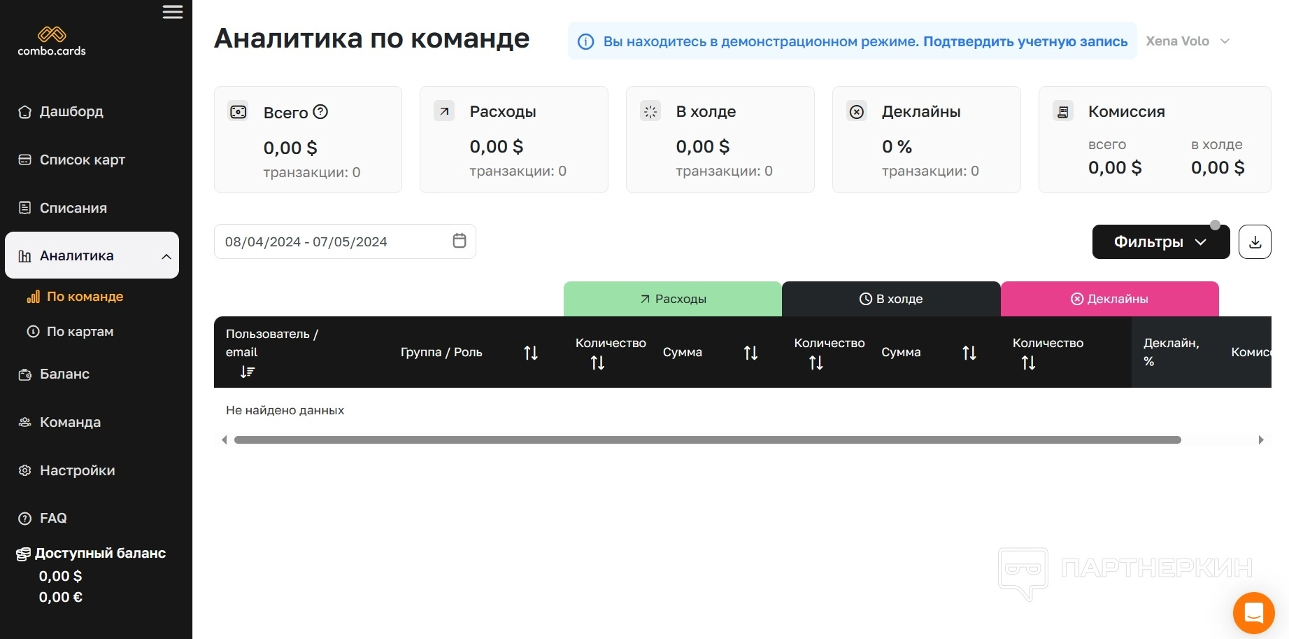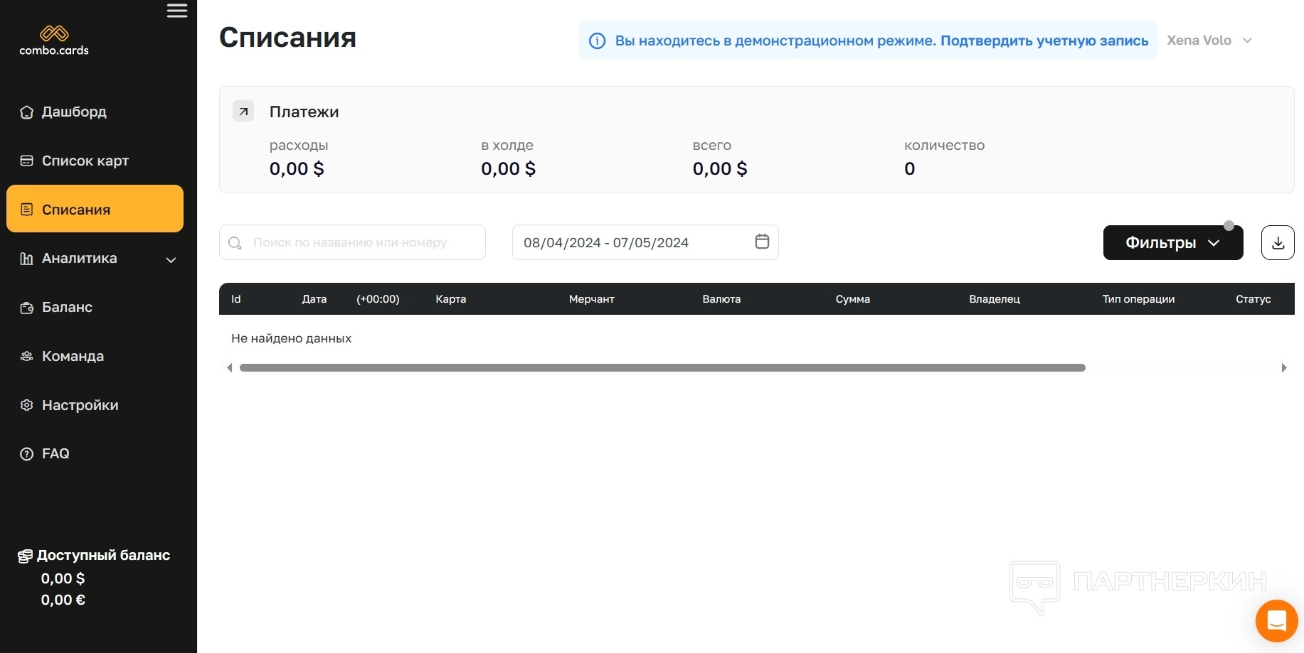 Пользователь будет всегда в курсе всех своих транзакций. Combo Cards предоставляет удобные инструменты для аналитики, а отчеты можно выгружать в .csv.