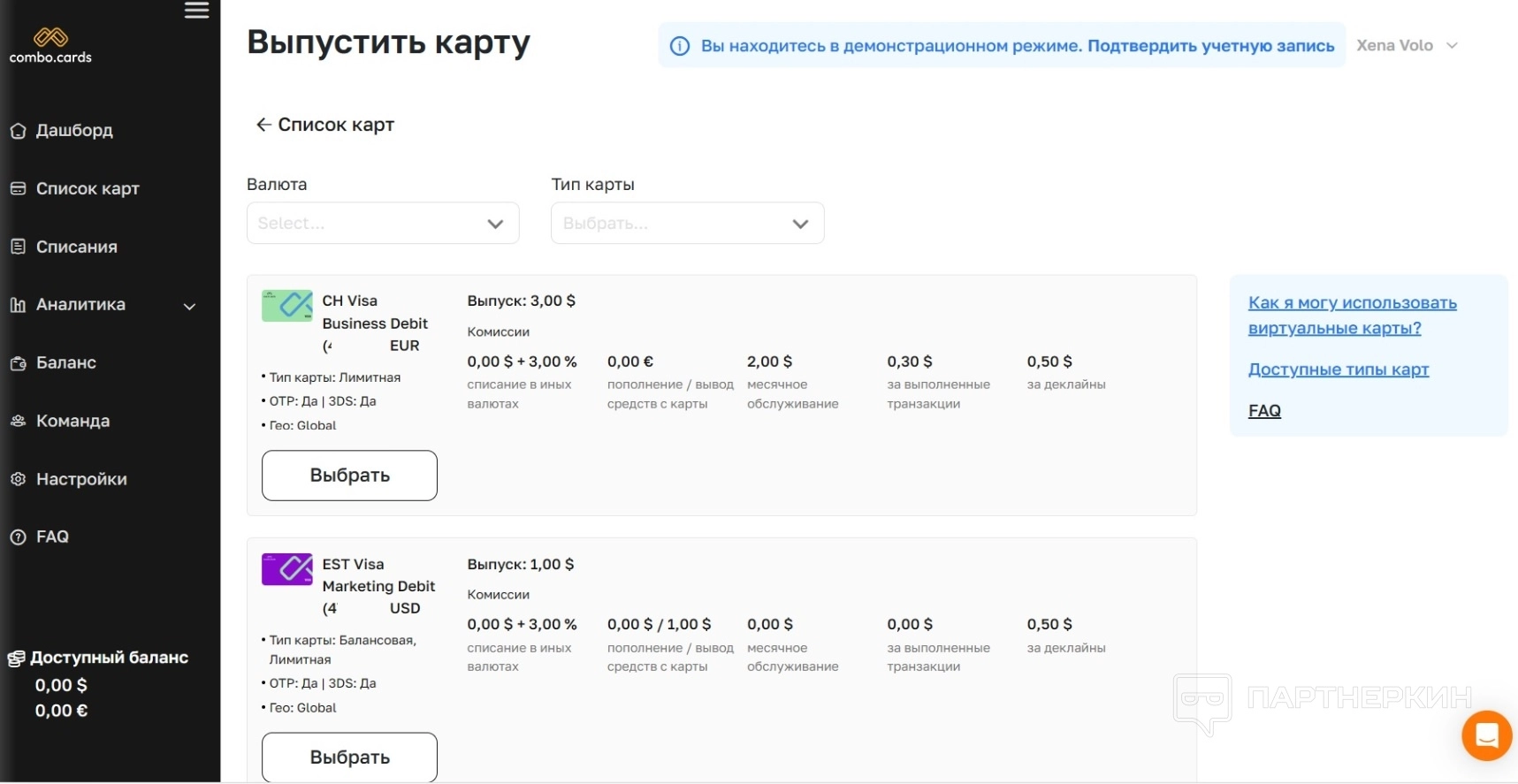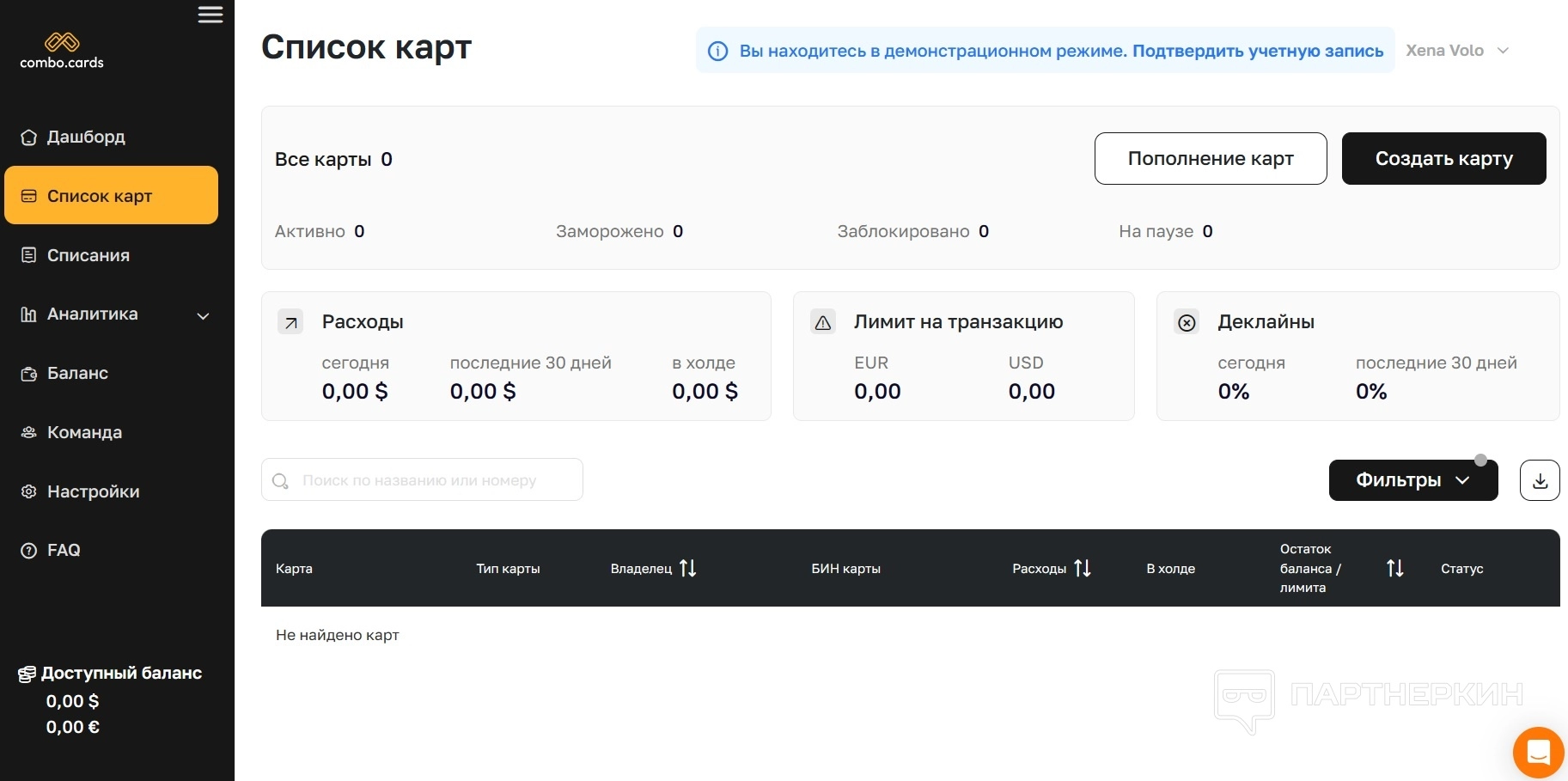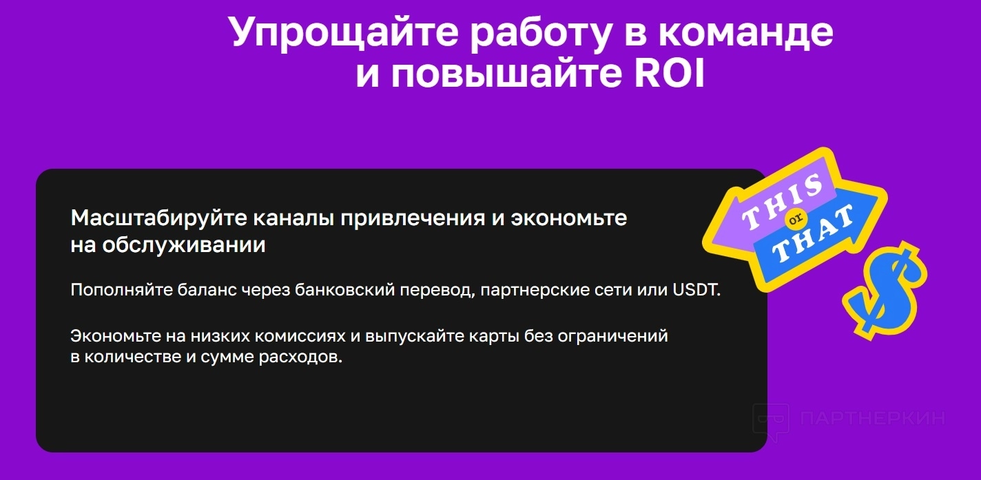 Напоминаем, что для читателей Partnerkin мы подготовили специальный промокод PARTNERKIN_10 . Используйте его при регистрации, чтобы получить 10 виртуальных карт бесплатно в дополнение к 20 виртуальным картам, которые получают все новые пользователи. А также пополняйте баланс до $5 000 без комиссий в течение 2 недель после регистрации.