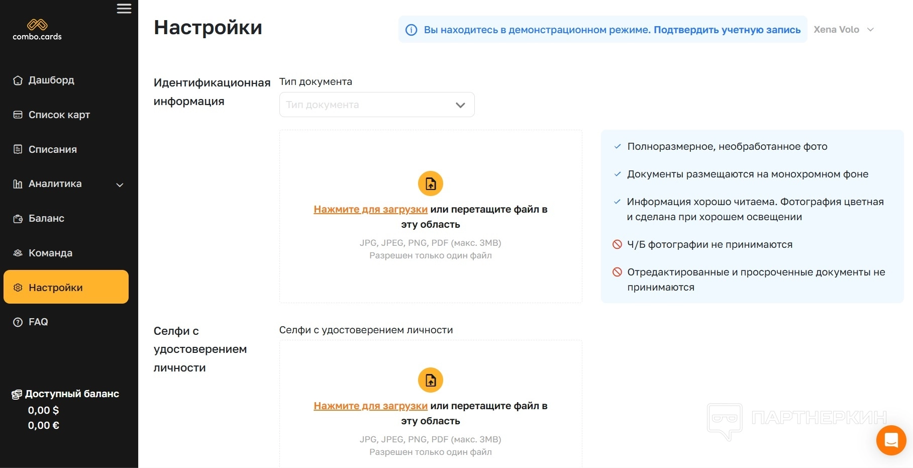Чтобы пройти верификацию для снятия ограничений, нужно подтвердить свою личную информацию у менеджера Combo Cards через кабинет сервиса. В среднем прохождение верификации занимает 1-2 дня.