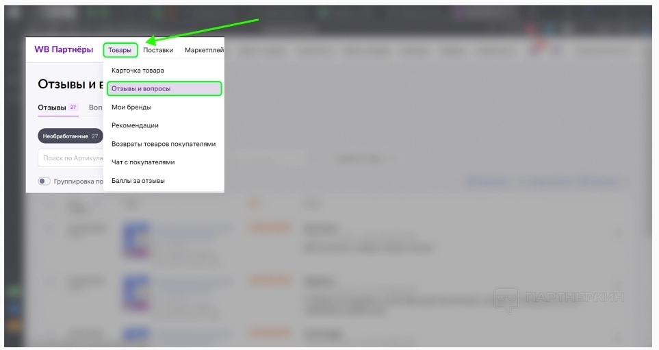 - Зайдите в раздел «Отзывы и Вопросы» : В личном кабинете выберите раздел, где отображаются все отзывы на товары.