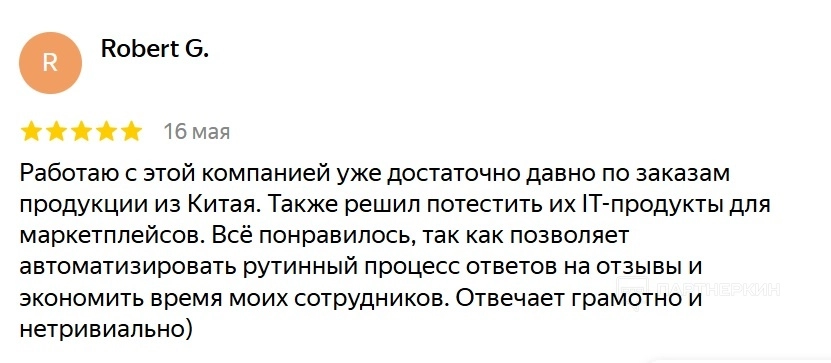 Другие селлеры хвалят сервис за нетривиальные, грамотные ответы, подчеркивают, что сервис оптимален в том числе при работе с товарами из Китая: