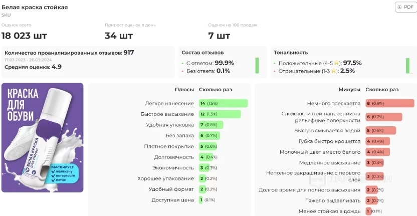Сервис после завершения процесса анализа отобразит среднее количество плюсов и минусов, выделяя наиболее часто отмеченные характеристики товара. Это позволяет пользователю получить ясную картину о том, что клиенты ценят, а что требует улучшения.