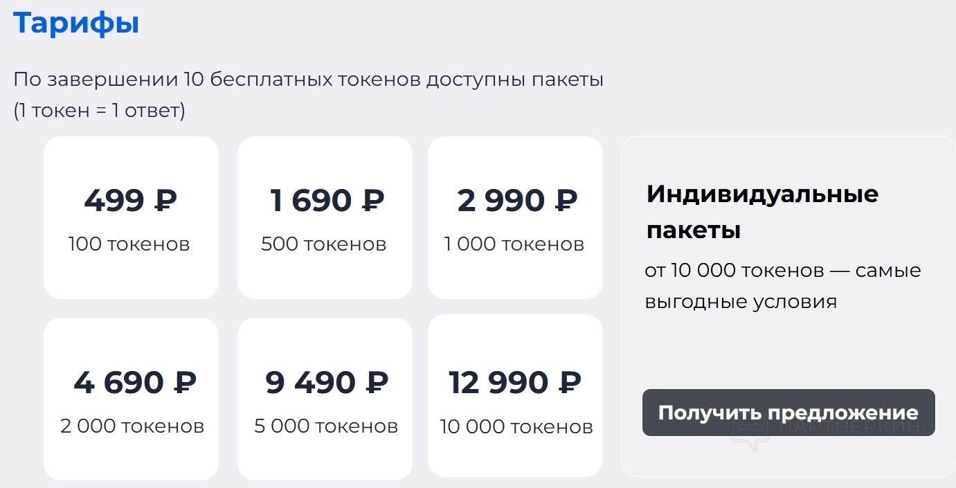 Каждый токен соответствует одному ответу на отзыв, что позволяет гибко планировать расходы в зависимости от объема взаимодействия с клиентами.
