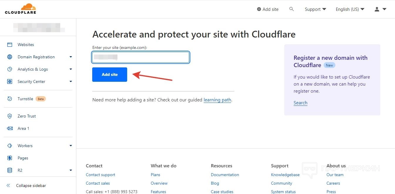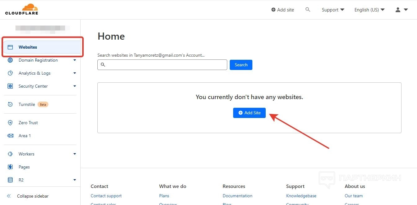 - На главной странице личного кабинете или во вкладке Websites кликните по кнопке Add Site.