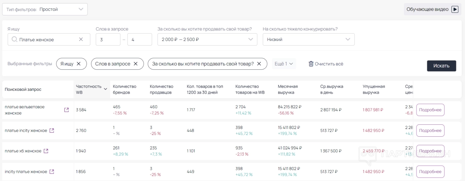 - большая база данных — сервис использует большую базу данных, что позволяет предоставлять точные и актуальные данные о маркетплейсах;