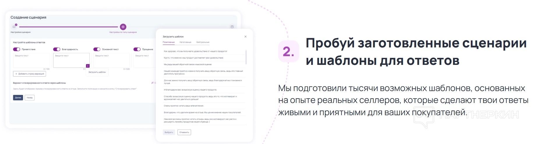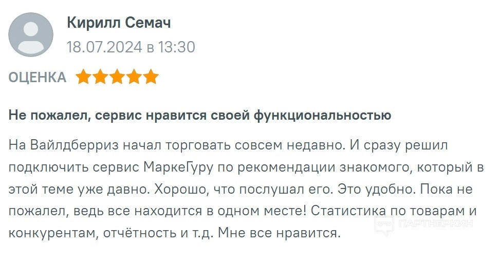 - Гибкие настройки для автоматических ответов . MarketGuru позволяет настраивать сценарии ответов на отзывы всего один раз, чтобы больше не беспокоиться о пропущенных откликах. Гибкость настроек делает возможным создание индивидуальных шаблонов под разные ситуации — от положительных отзывов до критических комментариев. Таким образом, каждый отзыв получает адекватное и своевременное внимание, а селлер экономит время на ручной обработке.