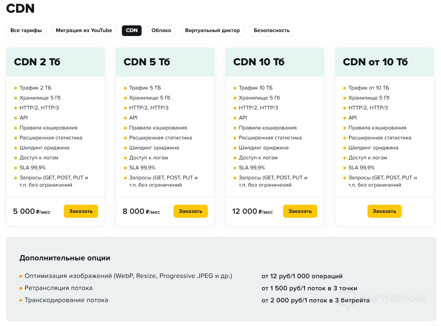 Тарифы на CDN и другие услуги