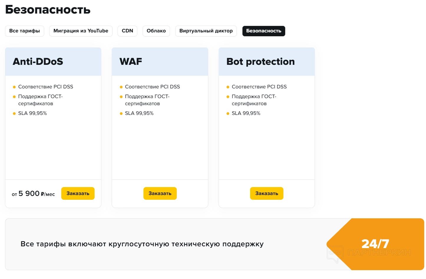 Помимо CDN, платформа предлагает облачные решения, включая гибкие конфигурации для виртуальных машин и S3-хранилище, а также услуги по защите от DDoS-атак, ботов и веб-угроз (WAF). Стоимость этих услуг варьируется в зависимости от выбранной конфигурации и объема, начиная от 4 600 ₽ для облака и от 5 900 ₽ для защиты.