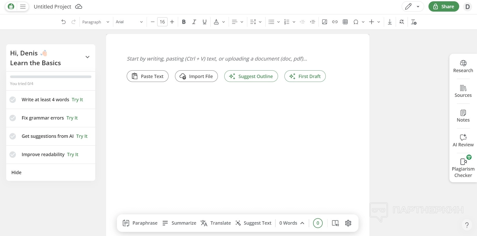 Помогает устранять грамматические, орфографические и пунктуационные ошибки в тексте. В отличие от обычных редакторов текста, этот инструмент использует искусственный интеллект, что позволяет ему находить и исправлять более сложные ошибки. Grammar Checker автоматически анализирует текст, выделяя ошибки и предлагая исправления. Также помогает улучшить стиль написания. Пользователи могут моментально исправить все найденные ошибки, что особенно удобно при работе с большими документами. Этот инструмент подходит для людей, которым важно не только избежать опечаток, но и улучшить качество текста в целом. Grammar Checker также помогает сделать текст более плавным и читабельным, что повышает его восприятие целевой аудиторией. Подобные функции вычитки полезны как в академическом, так и в профессиональном контексте.