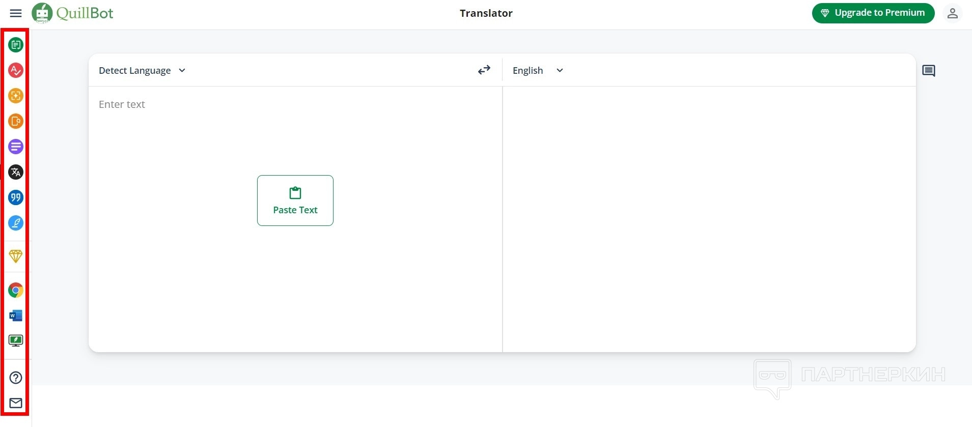 После регистрации все инструменты появятся в левой части экрана, можно выбирать любую опцию и работать с ней. Все инструменты работают по одному принципу: пользователь вставляет текст, выбирает настройки и запускает процесс.