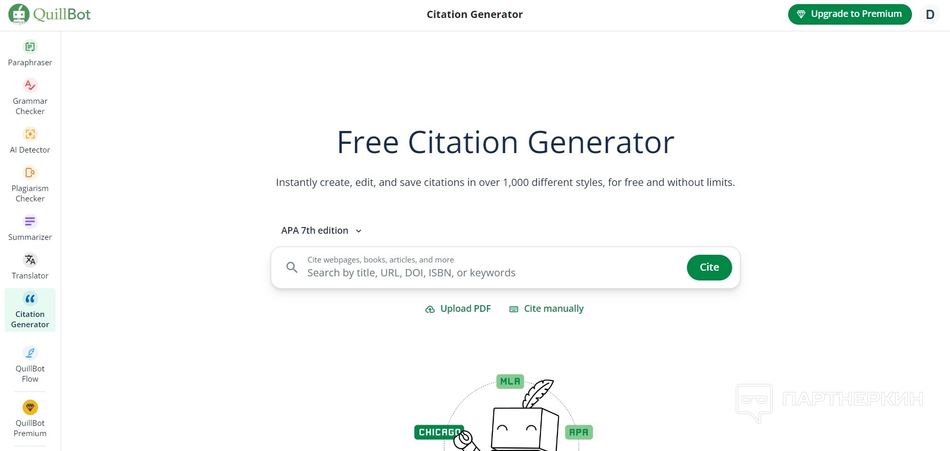 Предоставляет возможность легко и быстро создавать цитаты в формате APA или MLA. Пользователи могут ввести URL, ISBN или другой идентификатор источника, и инструмент автоматически создаст правильную цитату. Важной особенностью является возможность управлять всеми цитатами в одном месте и редактировать их при необходимости. Citation Generator доступен не только в Co-Writer, но и на главной странице