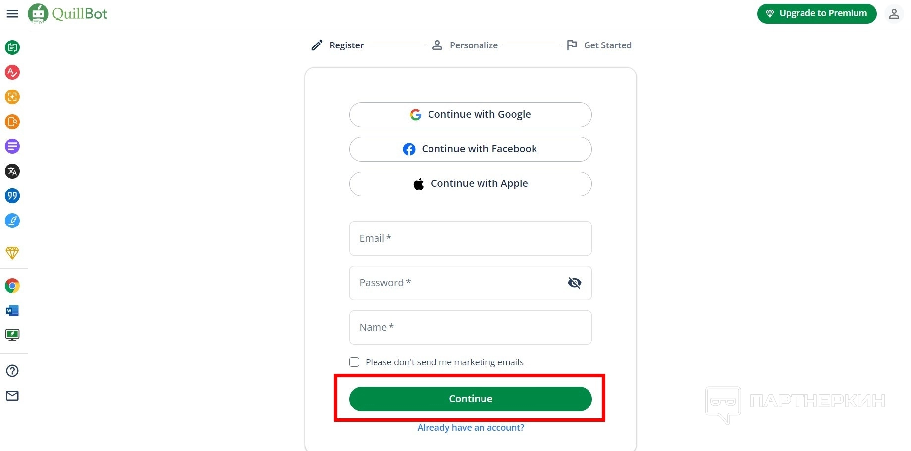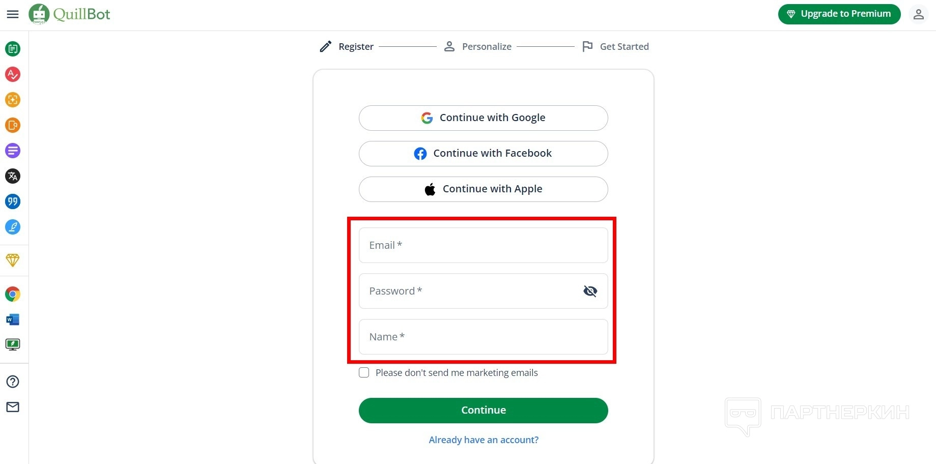 - Чтобы зарегистрироваться с помощью электронной почты, заполните регистрационную форму.