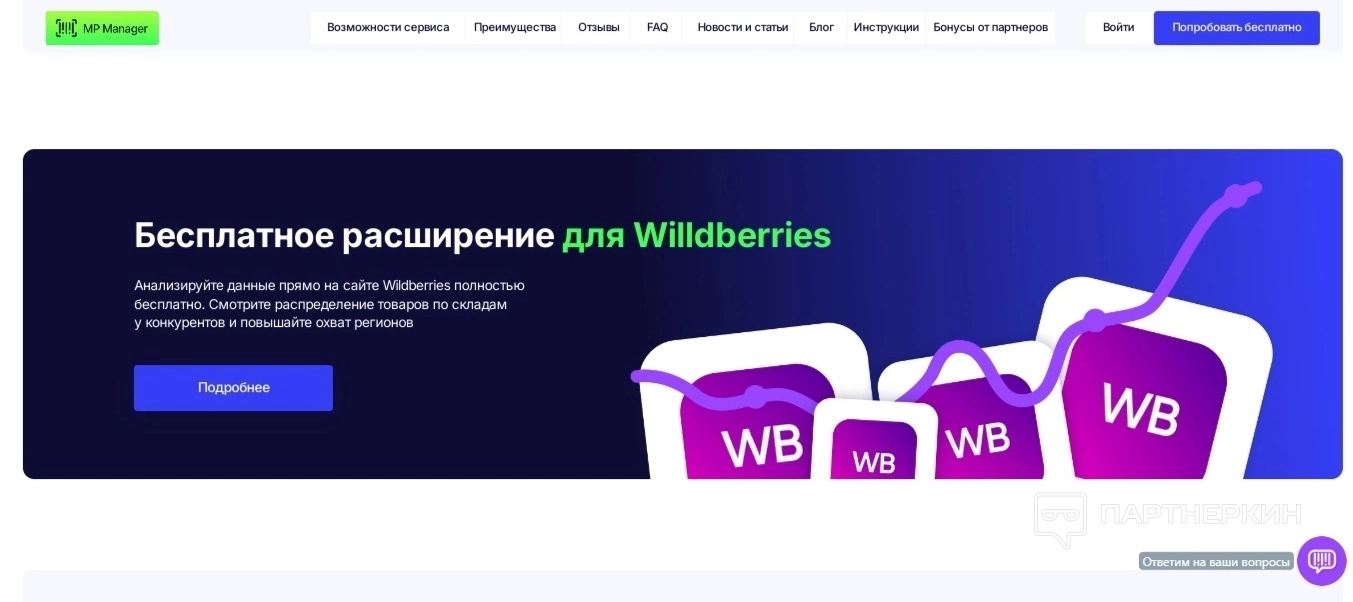 — инструмент помогает анализировать данные прямо на сайте Wildberries, предоставляя статистику распределения товаров по складам у конкурентов. Работает только после синхронизации