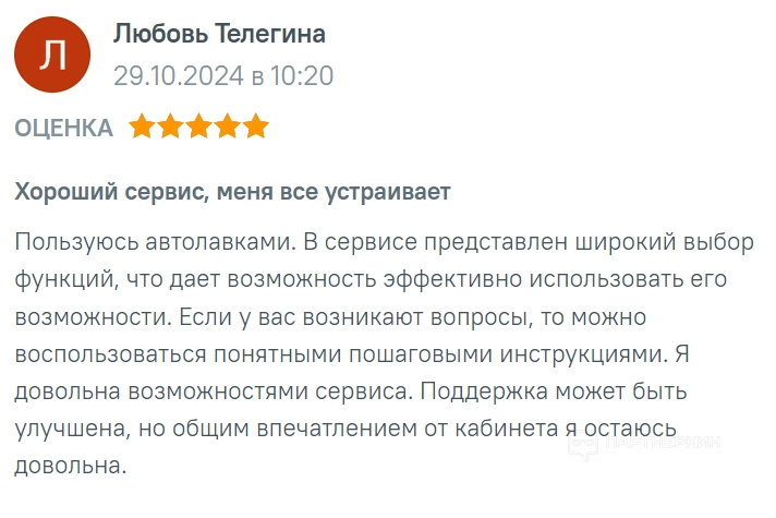 Пользователь сайта OtzyvMarketing Любовь Телегина довольна наличием пошаговых инструкций, однако отмечает необходимость улучшить работу техподдержки: