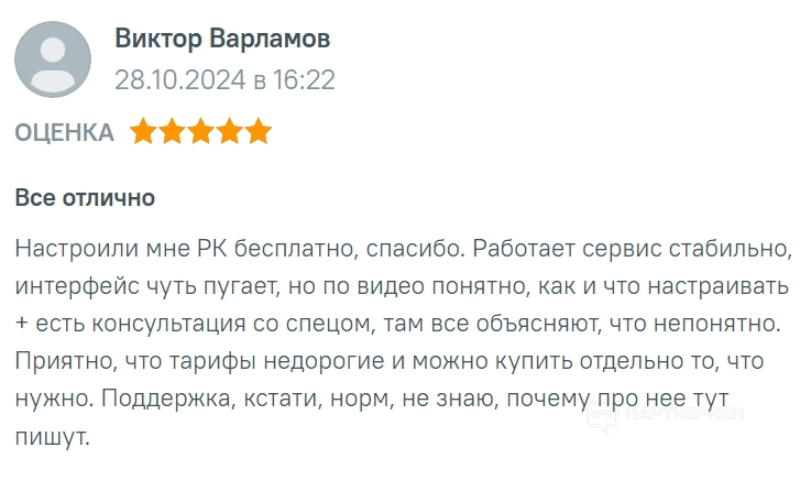 Виктор Варламов отмечает стабильность функционирования платформы, наличие консультаций с специалистами и недорогие тарифы: