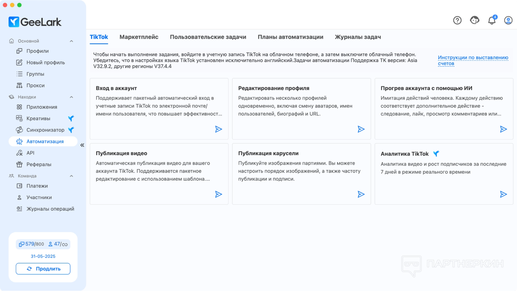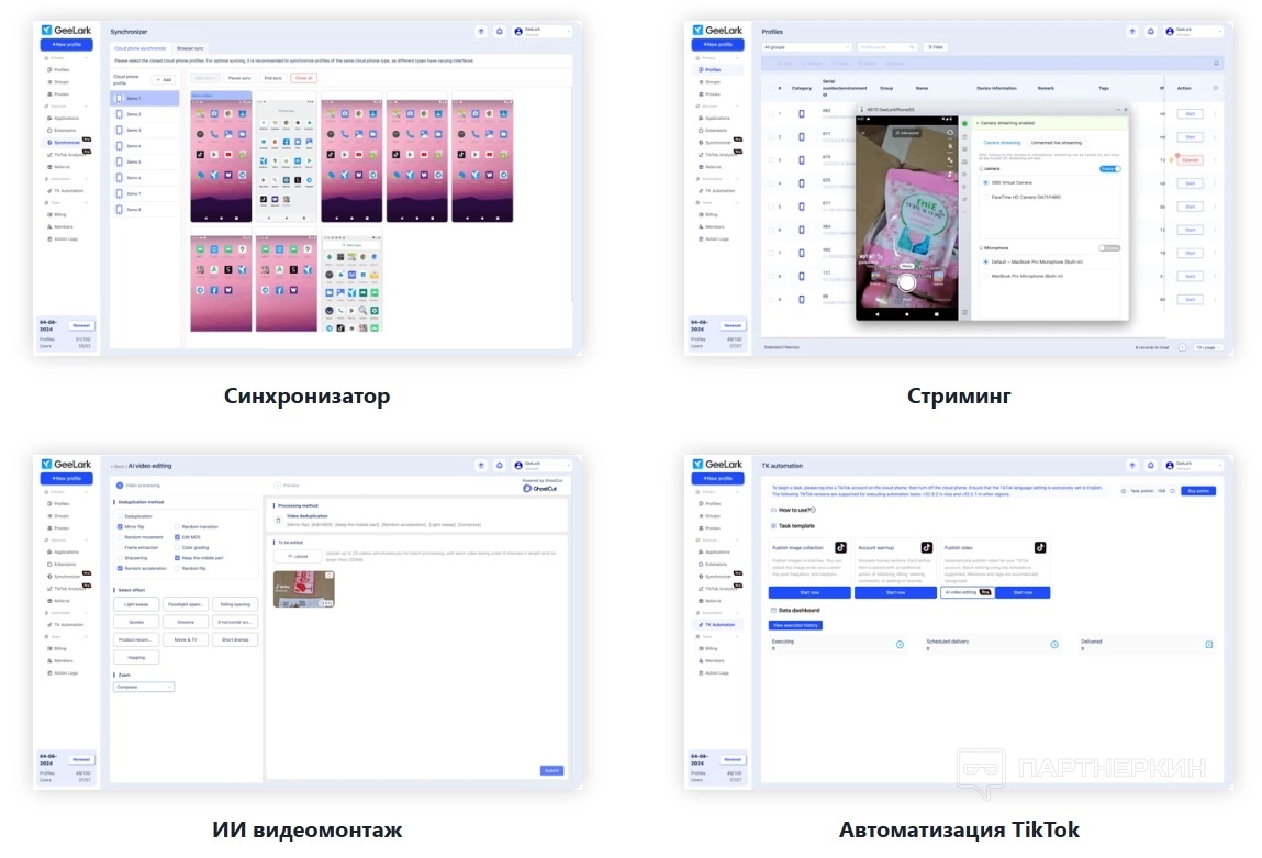 Также в числе дополнительных функций GeeLark предоставляет Синхронизатор, Стриминг, ИИ видеомонтаж и многое другое.