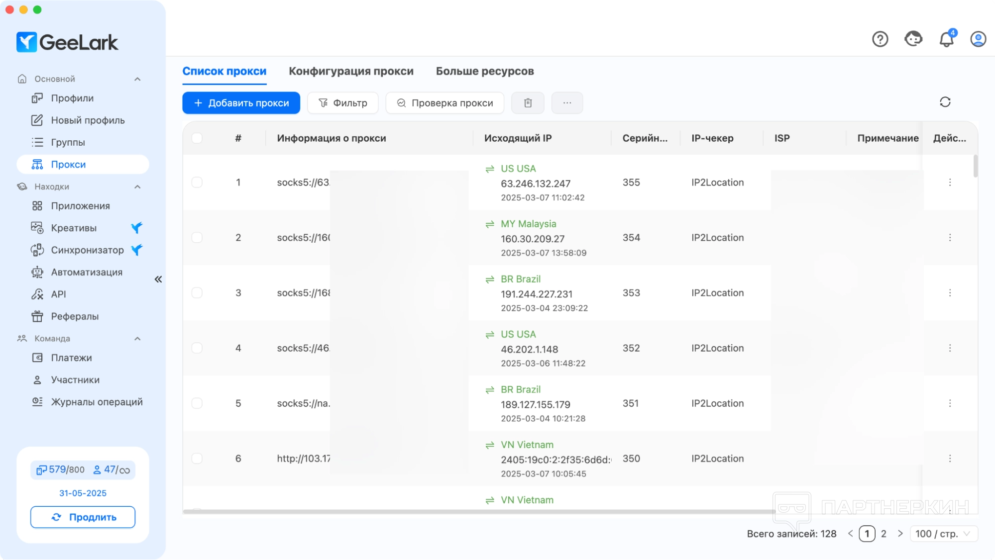 В GeeLark можно импортировать все необходимые прокси. Можно исключить дублирование поиска, копирования, вставки прокси-информации. К каждому прокси есть возможность добавлять заметки, чтобы избежать хаоса и ничего не перепутать. Управление происходит в разделе «Прокси».