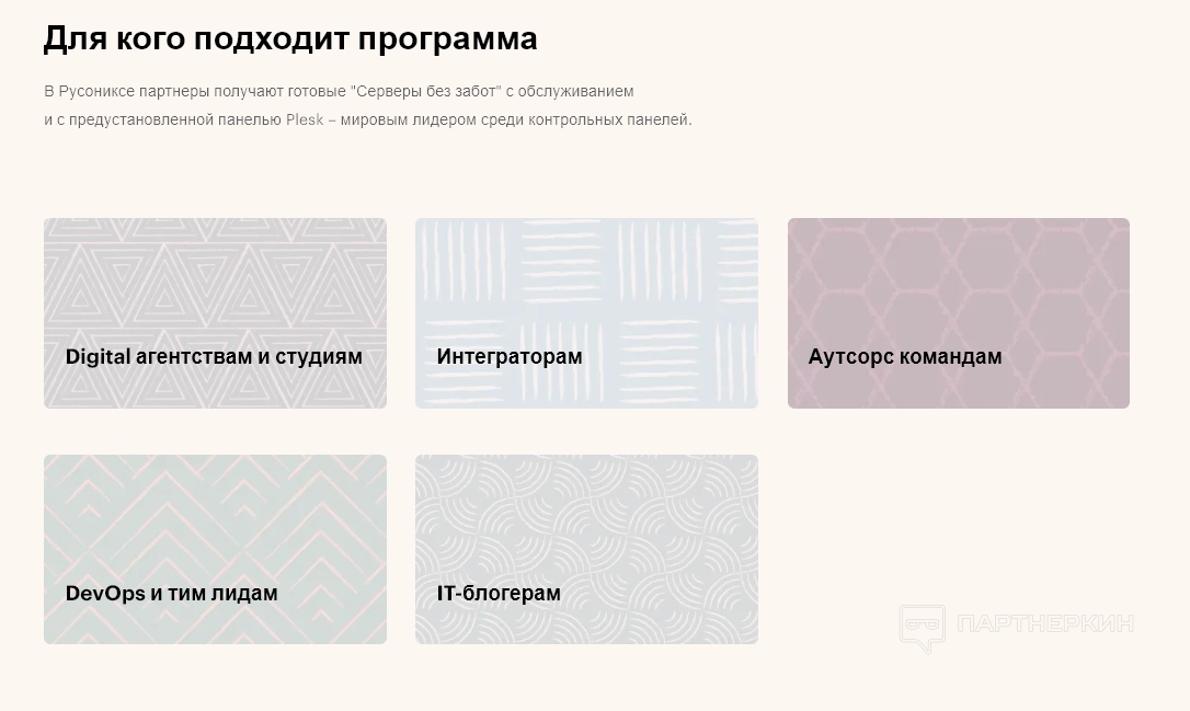 Партнерская программа подойдет для IT-блогеров, интеграторов, команд DevOps и аутсорс-команд, которые могут предлагать своим клиентам хостинг-услуги от Rusonyx, одновременно зарабатывая на этом. Присоединиться просто: регистрируемся на сайте, копируем реферальную ссылку и размещаем ее на своем ресурсе.