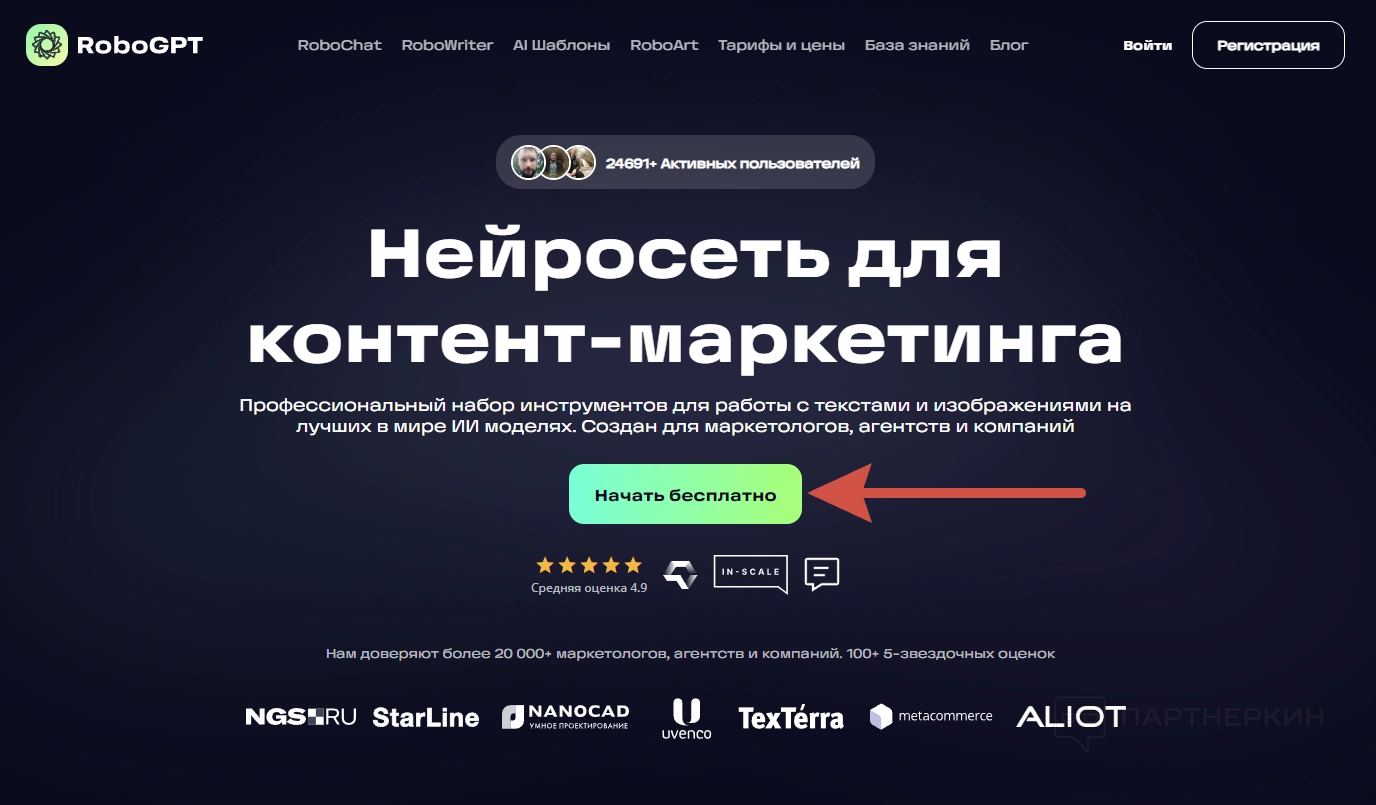 Чтобы получить доступ к функционалу, необходимо зарегистрировать учетную запись. Для начала открываем главную страницу сервиса и кликаем на кнопку «Начать бесплатно», которая расположена в центре экрана.