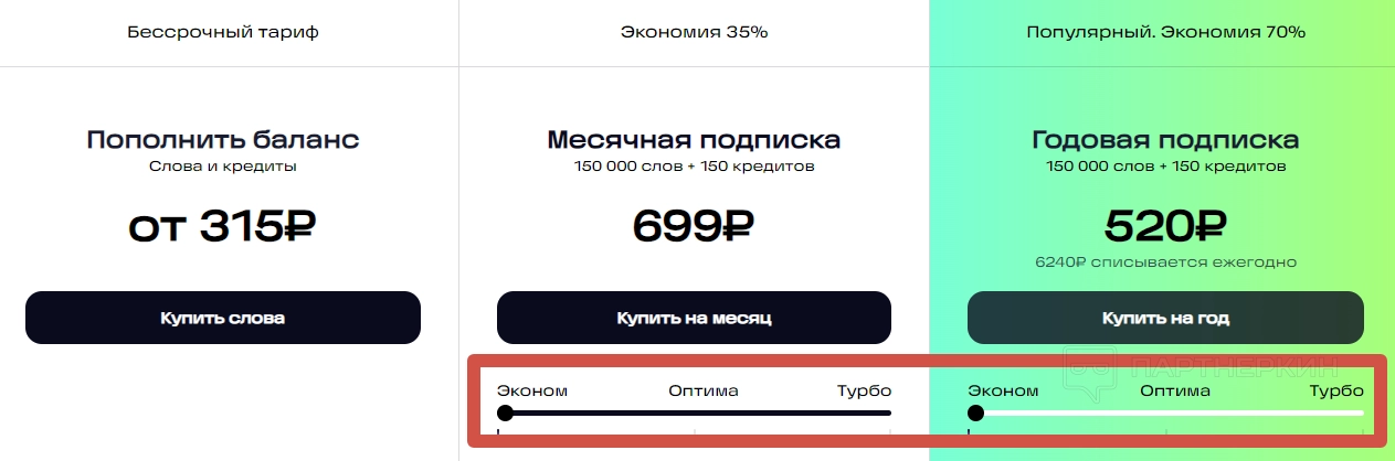 Количество слов можно выбирать, используя разные версии тарифов «Экономия» (эконом, оптима или турбо), однако стоимость из-за этого будет меняться.