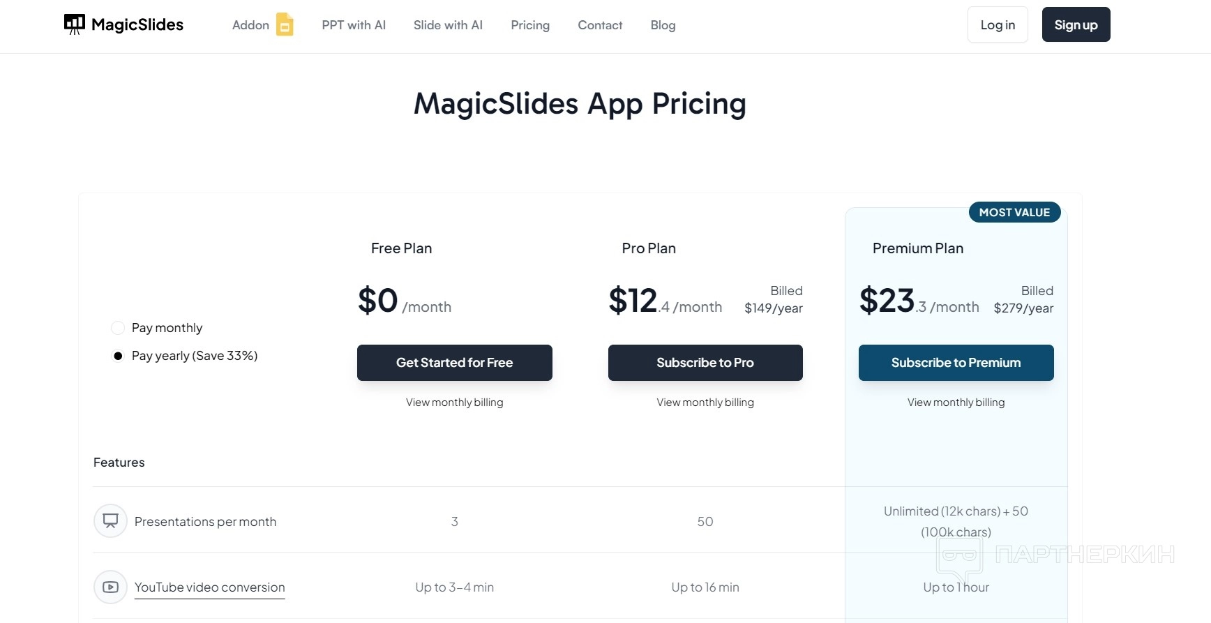 Ограниченное количество слайдов в бесплатных и низкобюджетных планах. |