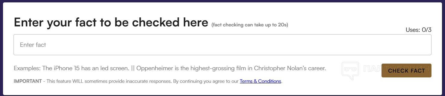 Проверка фактов ограничивается 3, после этого придется оплачивать подписку.