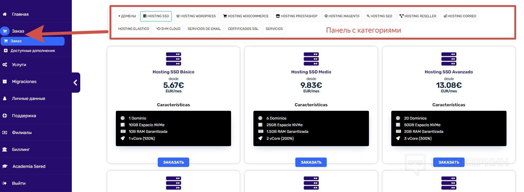 Это основной раздел, с помощью которого вы сможете выбирать и оформлять различные услуги. Какие продукты можно приобрести на данный момент: