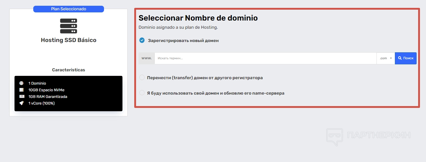 Для оформления, например, хостинга вам достаточно указать домен, который вы хотите использовать, и произвести оплату. Обратите внимание, что можно использовать свой домен, переносить доменные имена с других регистраторов или регистрировать вообще новые домены.