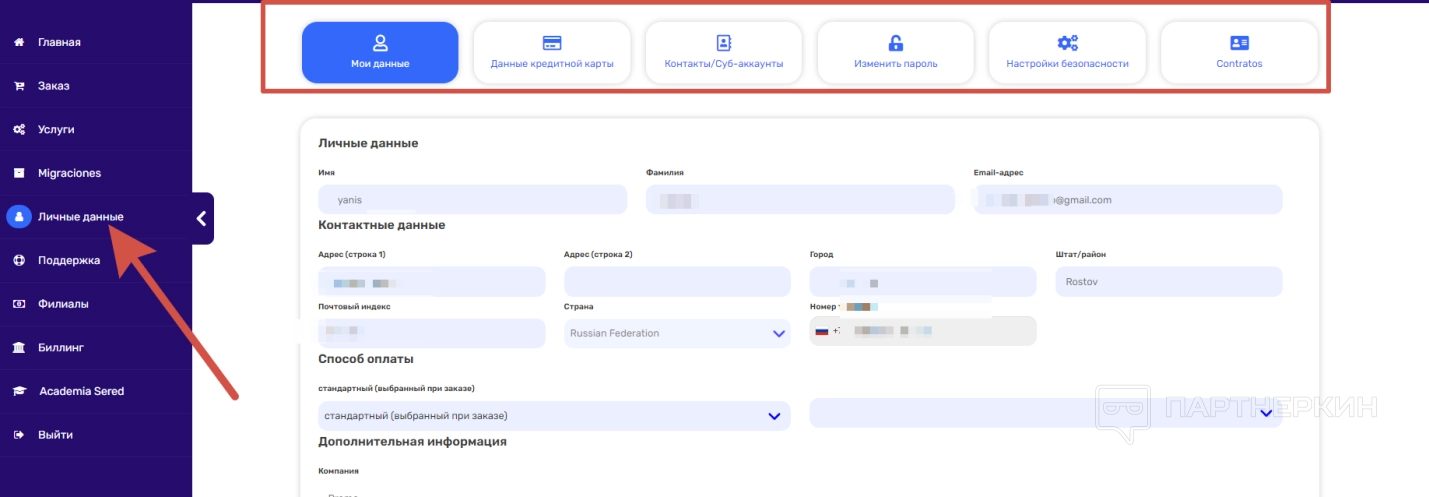 - Мои данные – блок с персональными данными, которые вы указывали в процессе регистрации. Информацию можно в любой момент изменить.