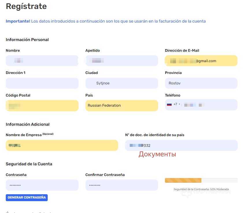 Также нужно указать имя вашей организации и вписать номер документа, подтверждающего личность.
