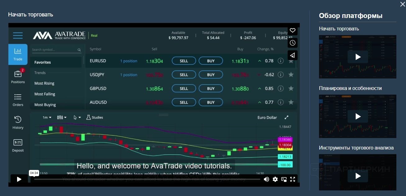 - Торговля с кредитным плечом . AvaTrade предлагает возможность торговать с кредитным плечом, позволяя открывать сделки на суммы, превышающие депозит. Это может увеличить прибыль, но также и риски, поэтому важно торговать с осторожностью.