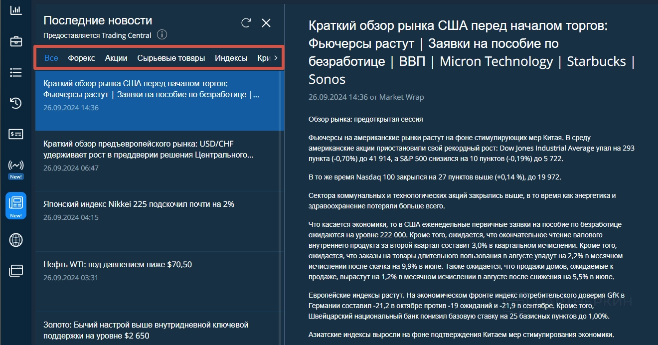 Это очень удобно, а для опытных трейдеров вообще сэкономит массу времени, ведь о всех изменениях на рынке, которые связаны с определенным типом активов, они смогут узнавать непосредственно в торговой платформе.