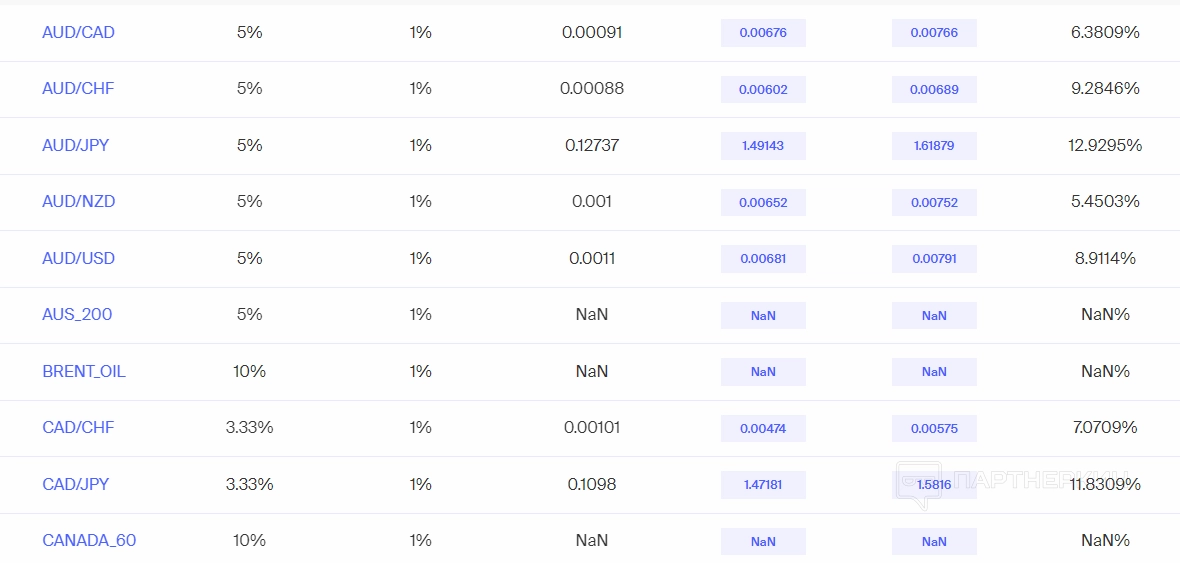 - Свапы. Если вы держите позицию открытой ночью, взимается или выплачивается комиссия (своп), которая зависит от актива и рыночных условий.