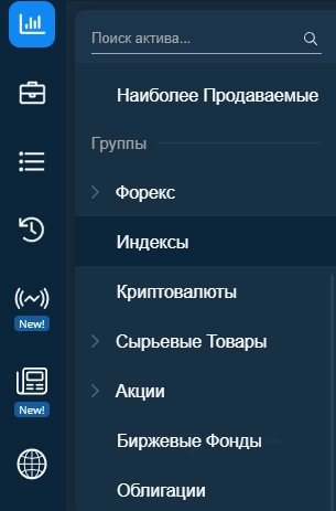 Еще ниже идет вкладка «Группы». В ней вы можете выбрать необходимый тип актива: