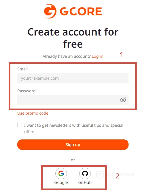Регистрация проходит быстро, достаточно указать электронную почту, пароль и промокод (если таковой есть). Если же вы не хотите вручную вводить данные, можно авторизоваться с помощью аккаунтов Google или GitHub. Выбираем подходящий вариант и завершаем регистрацию.