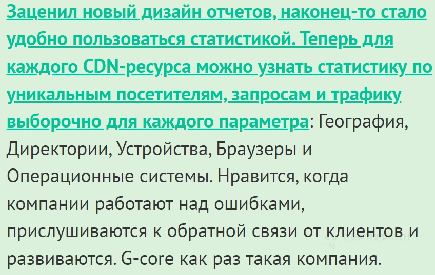 Еще один вебмастер утверждает, что после последнего обновления появилась возможность отслеживать статистику по уникальным посетителям, запросам и трафику по каждому CDN-ресурсу. Также он впечатлен, что сотрудники техподдержки прислушиваются к обратной связи.