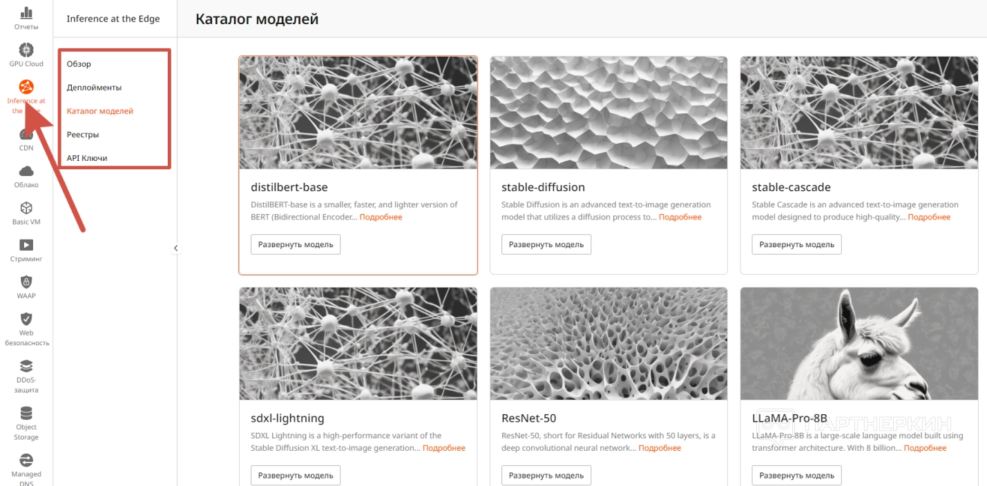 - Деплойменты — в этой вкладке вы можете развернуть свою первую ИИ-модель. Но для начала нужно пополнить счет.