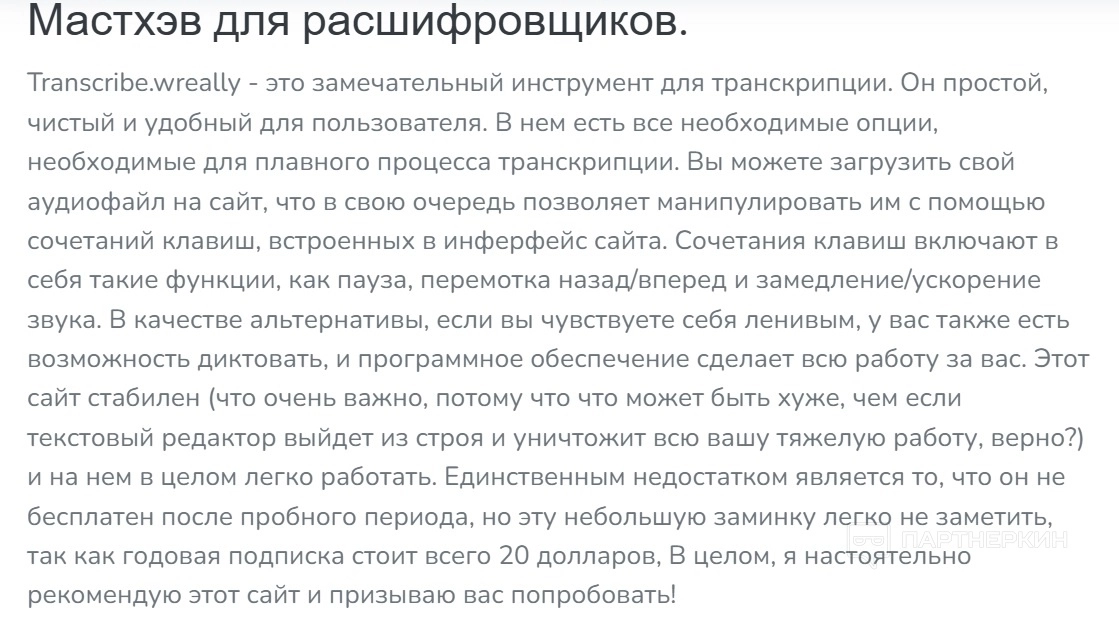 - Работа в автономном режиме . Редактор и аудиоплеер Transcribe.wreally могут работать без постоянного подключения к Интернету. Это удобно для пользователей, которым нужно работать в условиях нестабильного интернет-соединения или в поездках, где доступ к сети ограничен.
