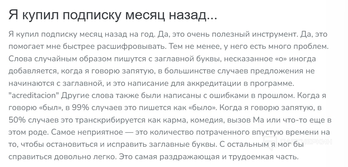 Некоторые клиенты критикуют сервис за небольшие недочеты с грамматикой, окончаниями и падежами — результат не всегда получается идеальным, что нужно учитывать: