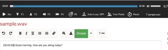 - Автоматическая петля . Эта функция позволяет автоматически приостанавливать и возобновлять воспроизведение аудио по мере редактирования расшифровки.