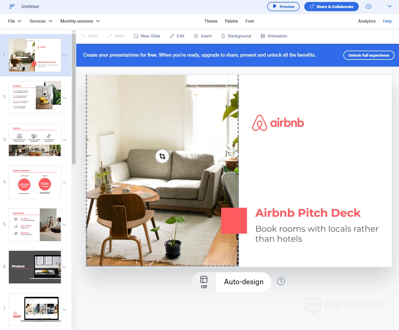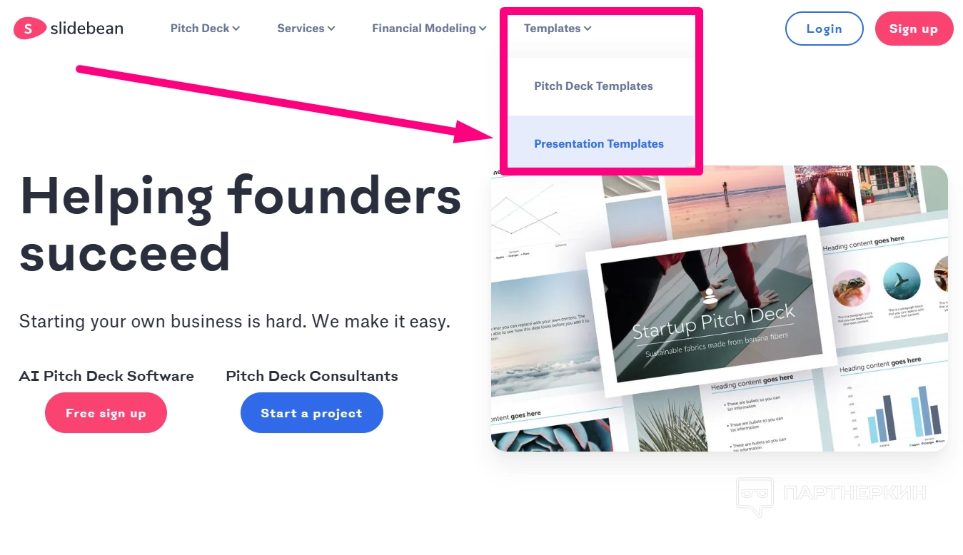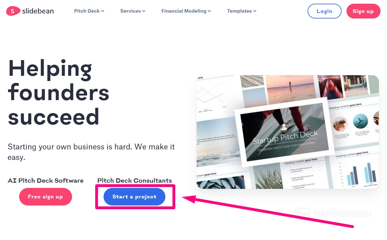 Кроме этого, Slidebean предлагает множество готовых решений, таких как дизайнерские шаблоны для питчей, маркетинговых и бизнес-презентаций. Для более сложных задач сервис предоставляет инструменты финансового моделирования и даже услуги индивидуального дизайна.