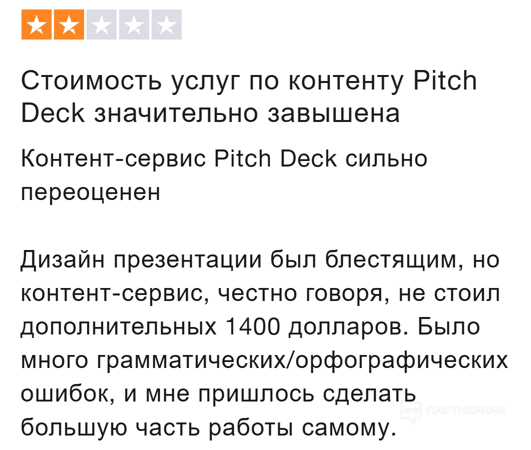 Другой пользователь отметил, что дизайн презентации был отличным, но текстовая составляющая, за которую он заплатил дополнительные деньги, полностью его разочаровала: