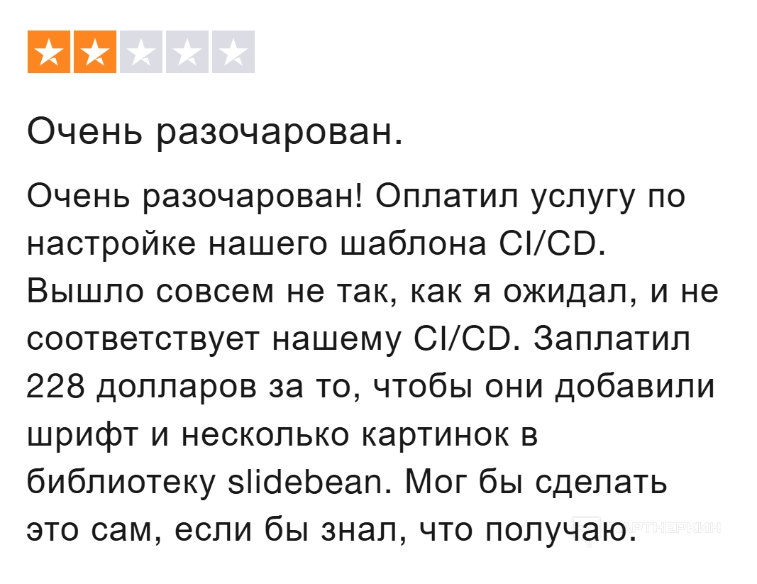Однако есть и такие отзывы, в которых пользователи делятся своим отрицательным опытом с этой компаний. В частности, один пользователь написал, что за сумму в 228 долларов он надеялся получить профессиональную презентацию на основе одного из шаблонов, который соответствовал бы его требованиям, а в итоге получил все тот же шаблон, но с другим шрифтом и несколькими новыми изображениями: