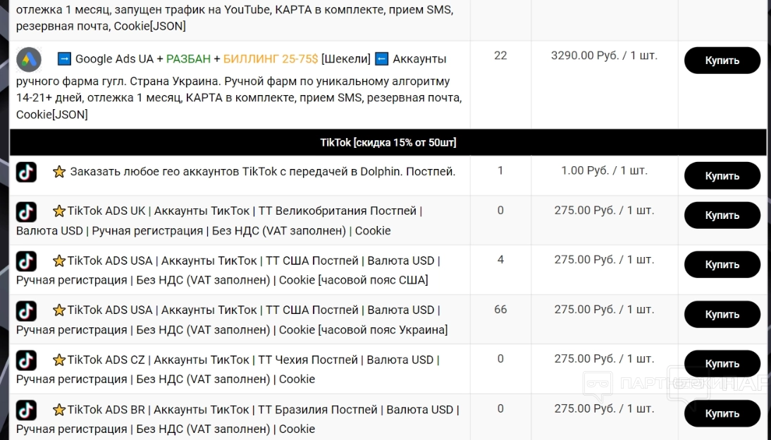 Также есть фармленные аккаунты для Google Ads и Тик Тока.