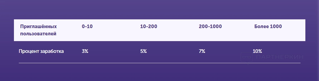 За приглашение новых клиентов по реферальной ссылке сервис поделится с вами прибылью с каждой заявки в соответствии с уровнем следующим образом: