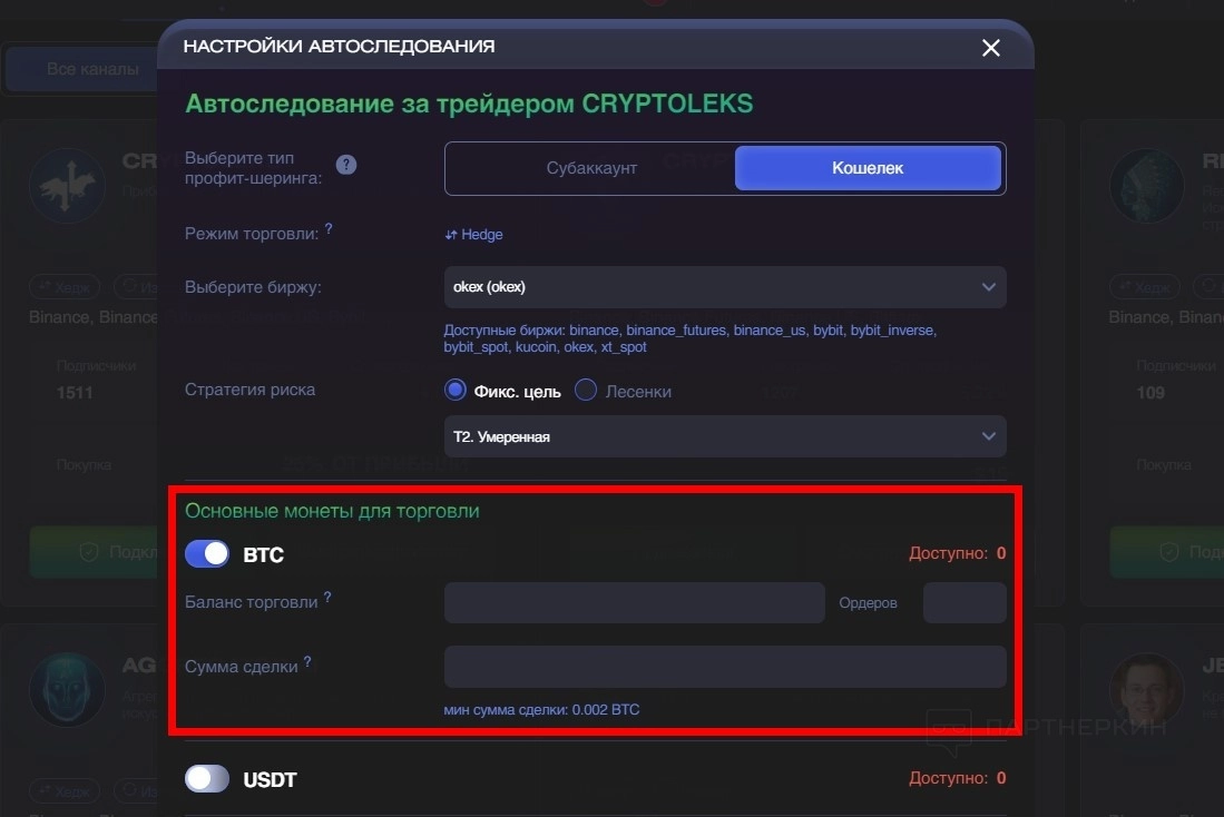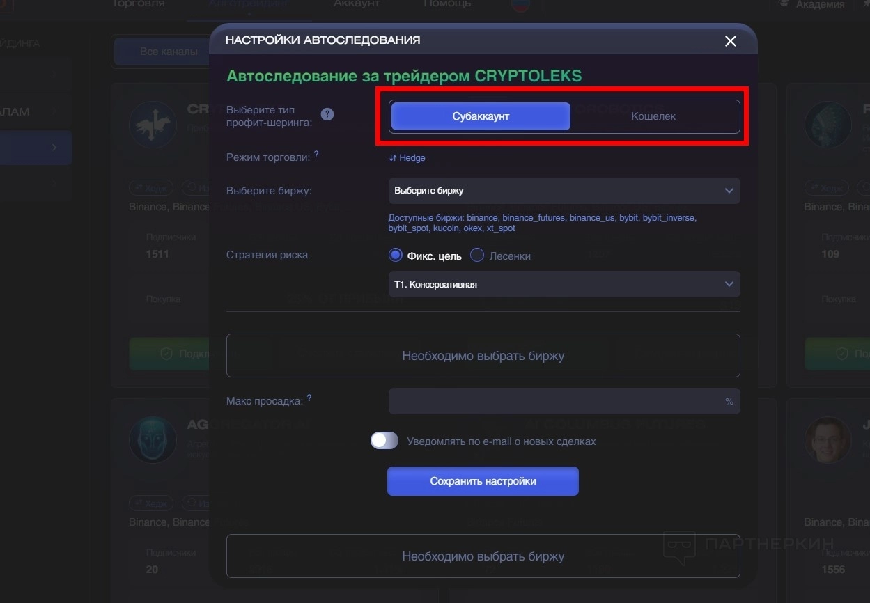 - Профит-шеринг. То есть оплата от доли от полученного дохода за оказанную услугу трейдера. Есть два варианта: субаккаунт биржи или кошелек.
